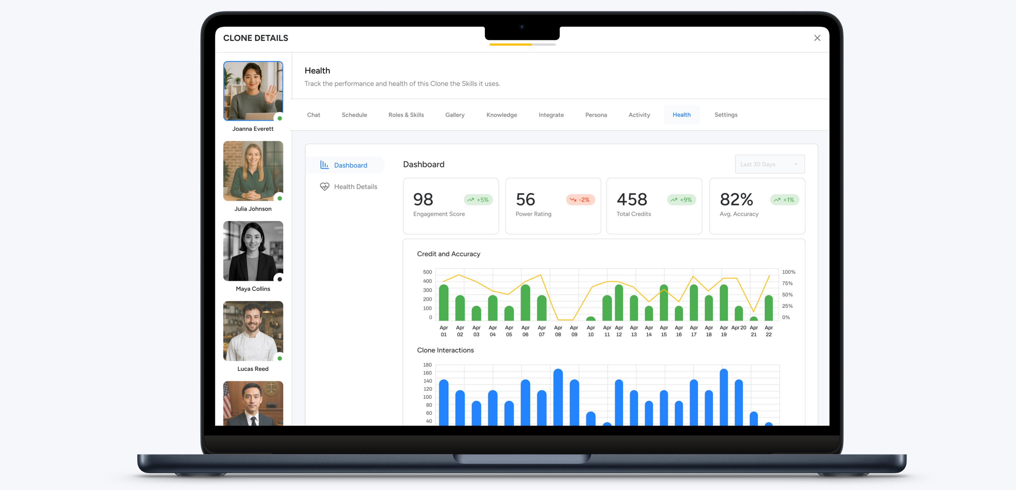 From engagement and accuracy to capacity and performance, the dashboard makes it easy to understand how each Clone is operating, where it’s excelling, and where optimization is needed—before issues impact your business.