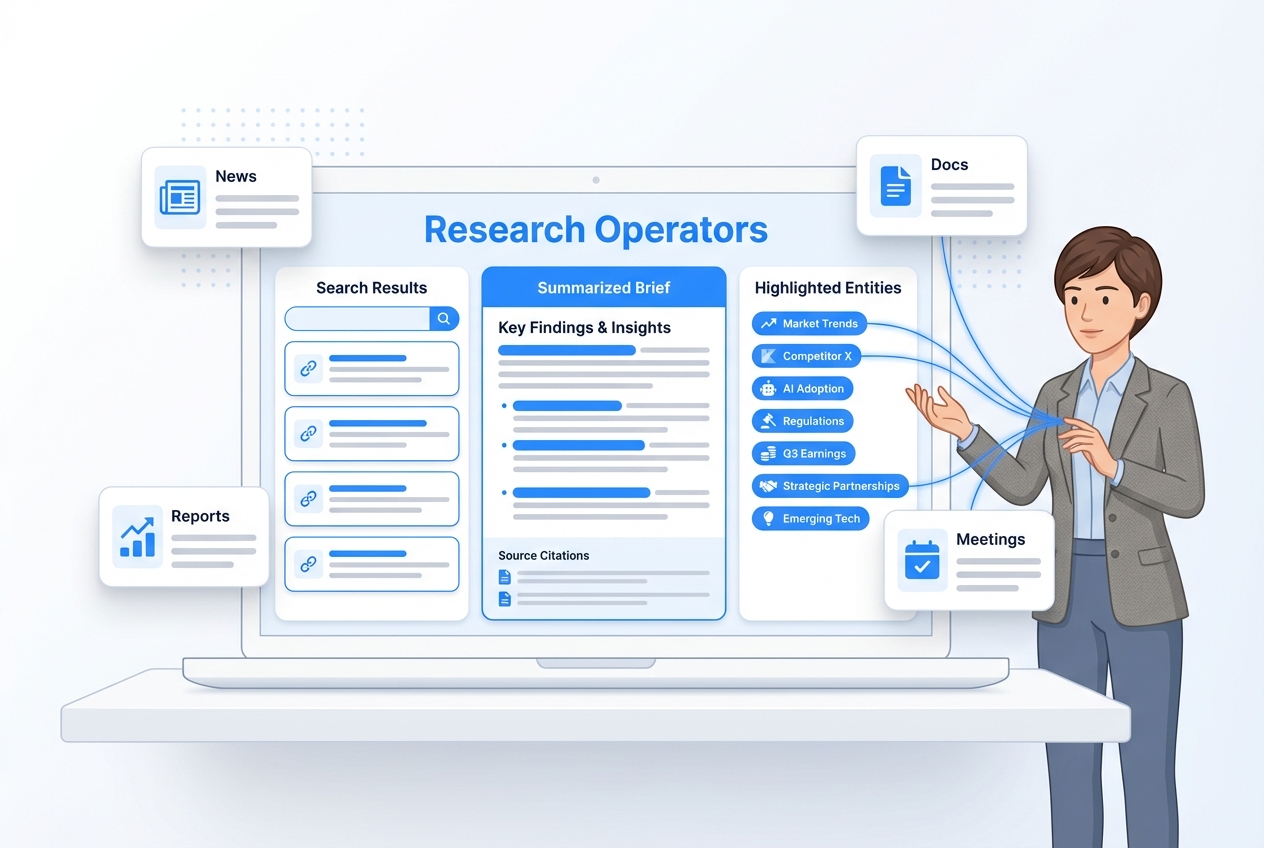 IR and finance teams juggle earnings prep, board materials, analyst questions, and a stream of investor meetings. Numbers live in spreadsheets, narratives in docs, and follow‑ups in inboxes—and every quarter it feels like rebuilding the story from scratch. An Investor Relations / Analyst Clone connects your financials, research, and meeting history so updates, decks, and summaries start from a structured draft instead of a blank slide at 11 p.m.