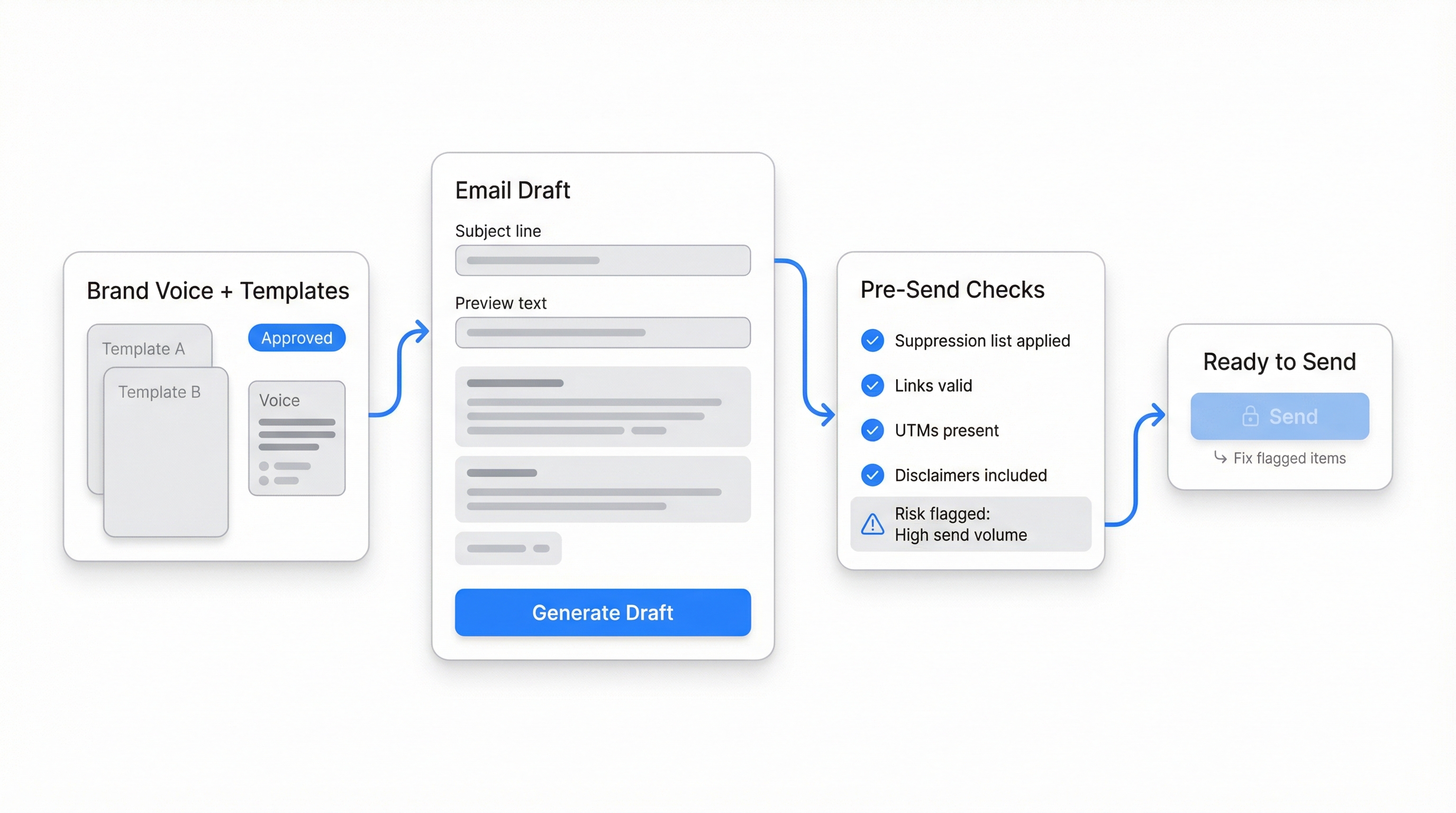 Connect your marketing platforms and share your templates and best-performing examples. Digital Teammates learn your tone, brand do’s/don’ts, disclaimers, and approval paths. They adapt to different campaign types—newsletters, lifecycle, product launches—while respecting permissions and required review steps.